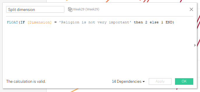 The advantage of breaking up the lines by their slope is that there isn’t as much crisscrossing of lines. And because all marks exist on the same y-axis, they can still be compared easily by looking horizontally. As we’ll see, another advantage of creating these custom dimensions is that you can control the distance between the members of the dimension.