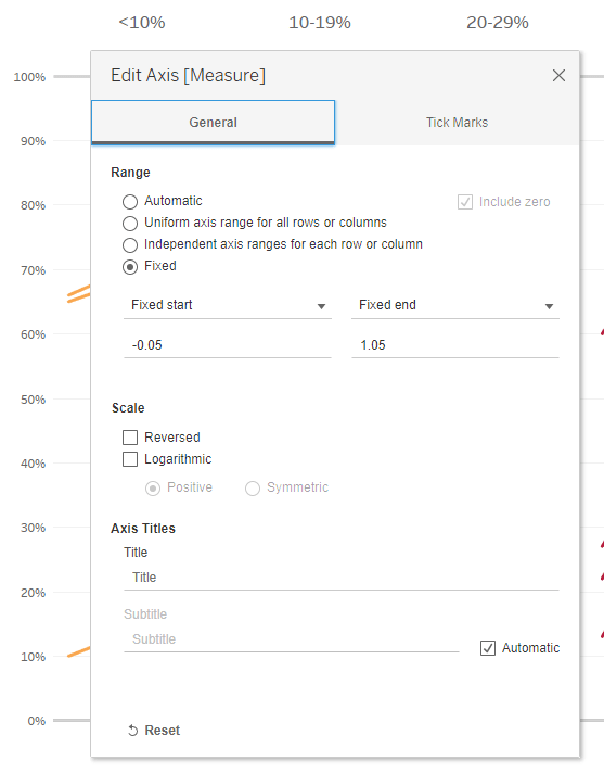 Fix the ‘Measure’ axis to get the percentages to format evenly spaced. (This tip is courtesy of Sam Parsons.)