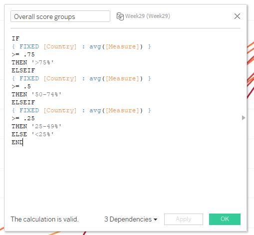 Another way I chose to group the slopes was by the overall average score for each country. Here’s the calculation for that view:
