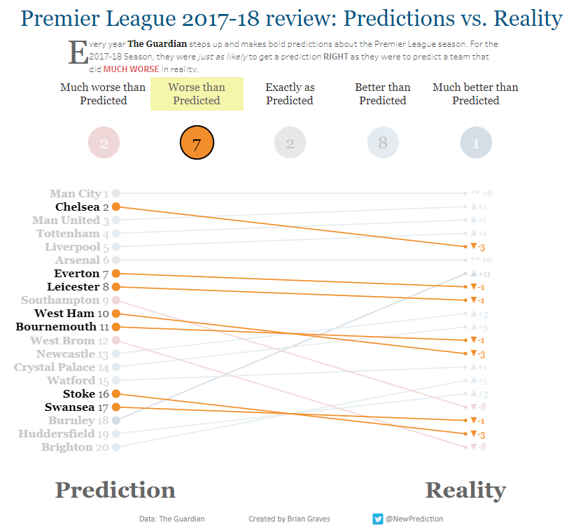 There can be other ways to do this, however. A very creative solution for this #MakeoverMonday viz was provided by Takafumi Shukuya. Here he added a lollipop chart to the right of the slopes to show the degree of change: