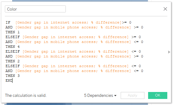 The next step is to create a calculated field that turns Tableau’s automatically-created table names field into ordinal integers. This will tell Tableau how to draw the path, plus it will make it a lot easier on you to sort out which corner of your square you are dealing with: