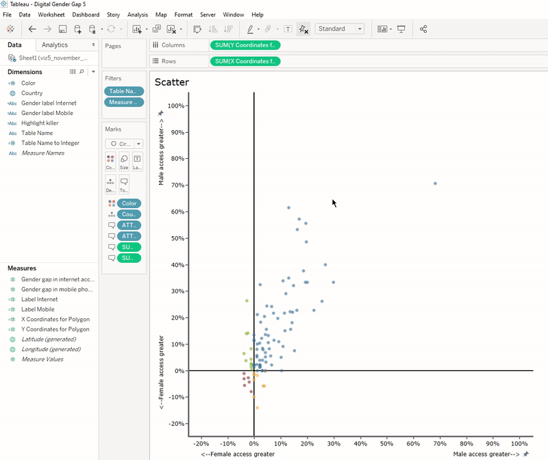 That’s everything you need to do to add polygons to a scatter plot. From here you can add whatever else you want to your viz. In my final dashboard, I also added a filter created from a list view. (See how to make this kind of filter here.) You can also download the viz from my Tableau Public profile if you would like to explore further.