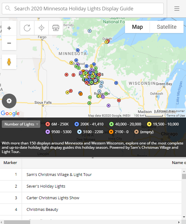 So, if you live in Minnesota and want to see light displays, check out Mike’s website. Or if you just want to interact with the map, you can see it here too.